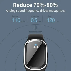 – Simple and effective: Pure physical mosquito repellent solution- Eco-friendly: Green and free of toxic chemicals- Convenient: Fast charging with long battery life- Powerful: Uses specific sound frequencies to efficiently drive away 70-80% of mosquitoes- Versatile: Suitable for the whole family to use- Long-lasting protection: Provides long-term mosquito repellent- Impressive specs: Input of 5V/1A, output of 34Hz-70KHz, and a life time of 130 hours.